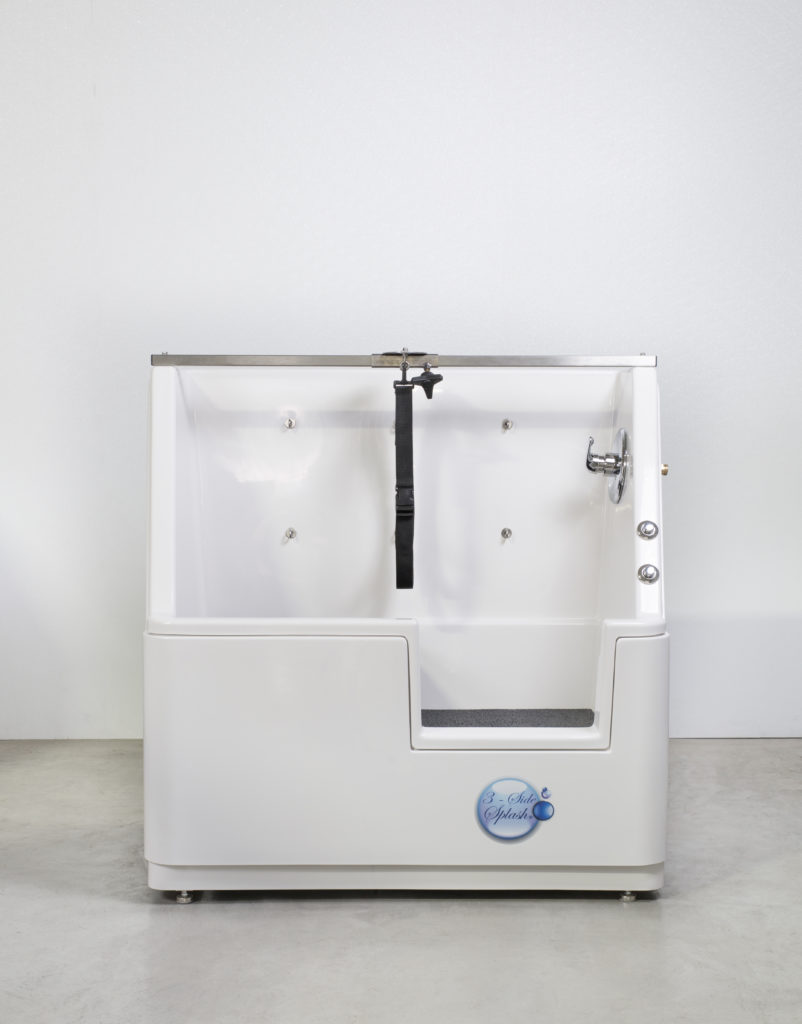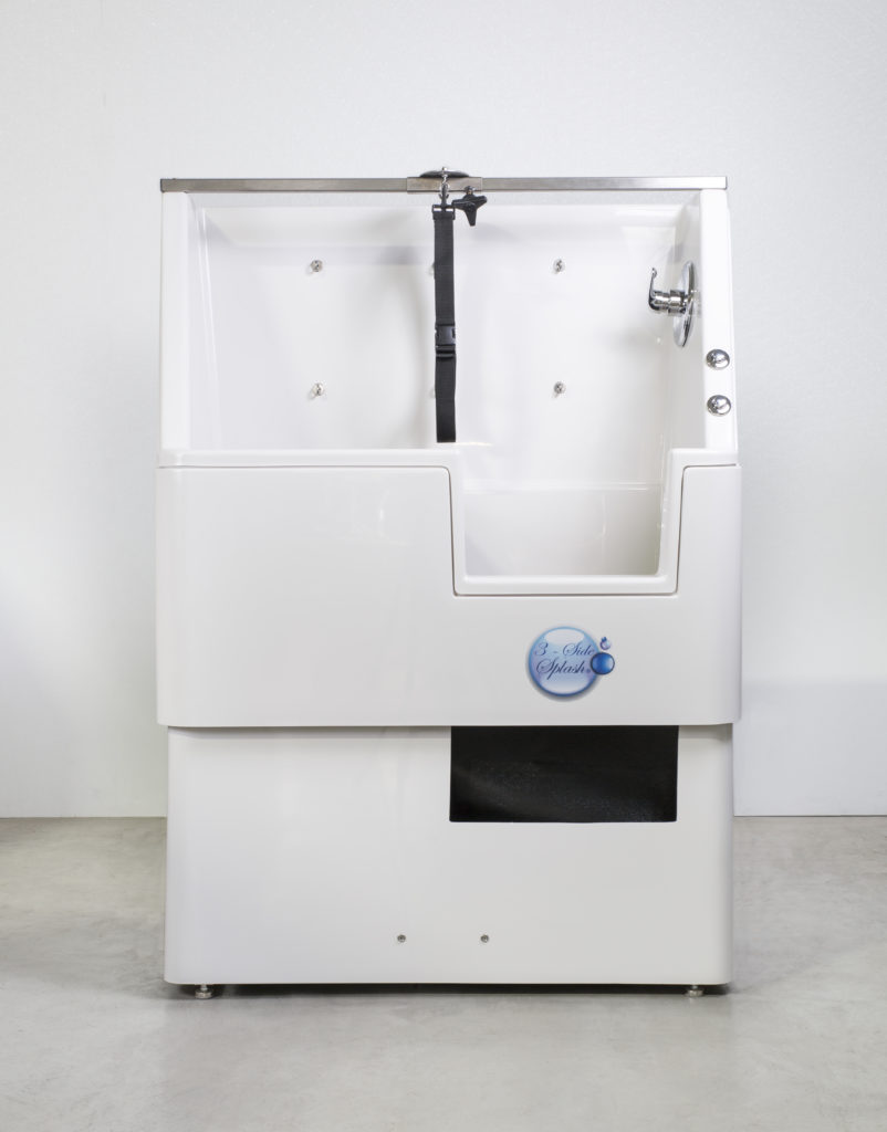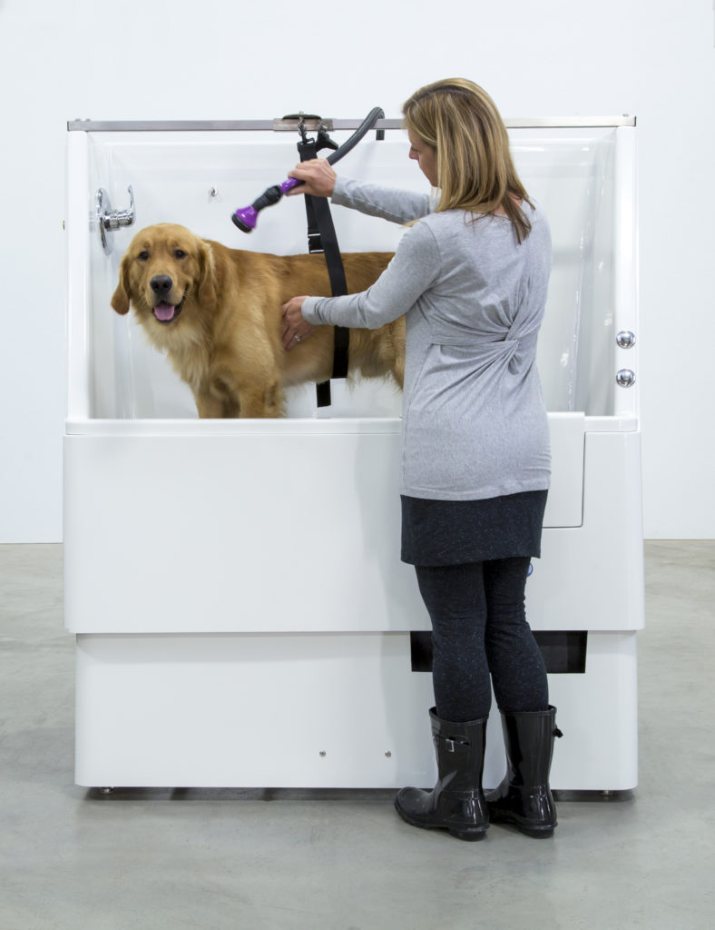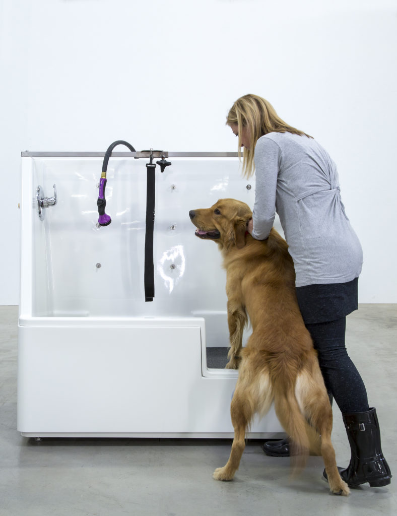 Our heavy-duty fiberglass UltraLift elevating wash unit is like a luxury shower for bathing four-legged friends. The elevating feature helps reduce stress and fear in dogs who don’t want to be lifted or walk up a narrow, metal ramp. With a lifting capacity of up to 250 pounds, even the most stubborn animals can be washed with ease. They are quieter and warmer than stainless steel tubs, which means less stress for dogs and more comfort for you.